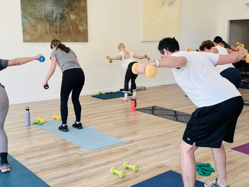 Offering barre, yoga, low-impact cardio, balance and mobility, pilates mat, and aerial classes.
